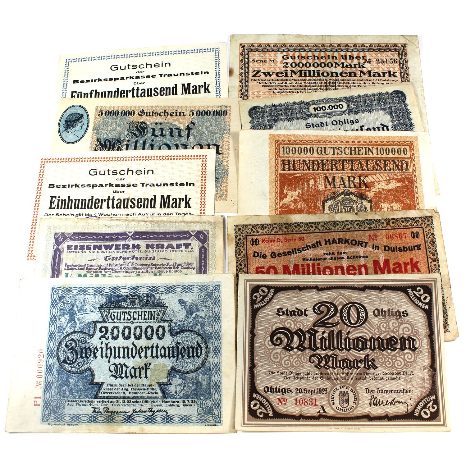 1912 Germany Notegeld Hyperinflation Notes. Great mixture, all different. 10pcs