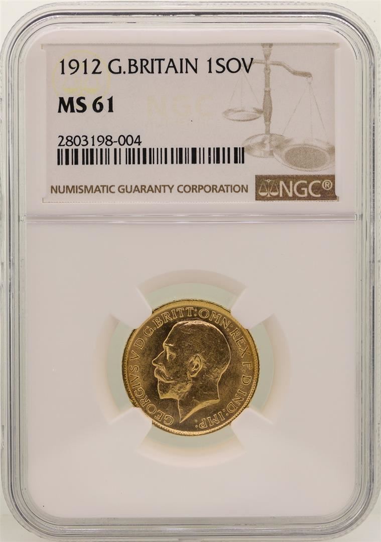 One 1912 Great Britain Sovereign Gold Coin NGC MS61. NGC Certified.