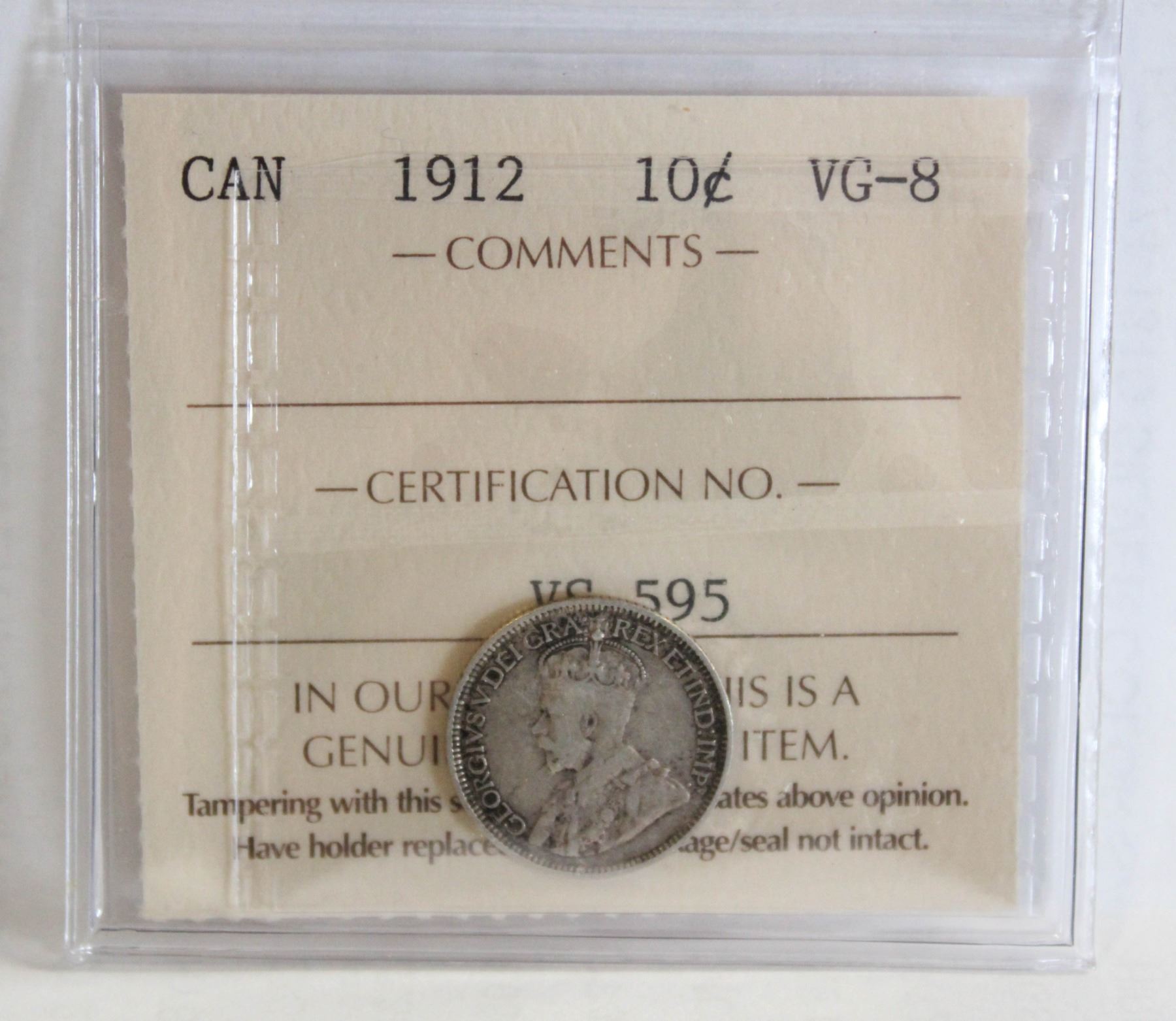 1912 ICCS CERTIFIED VG-8 SILVER $0.10 COIN