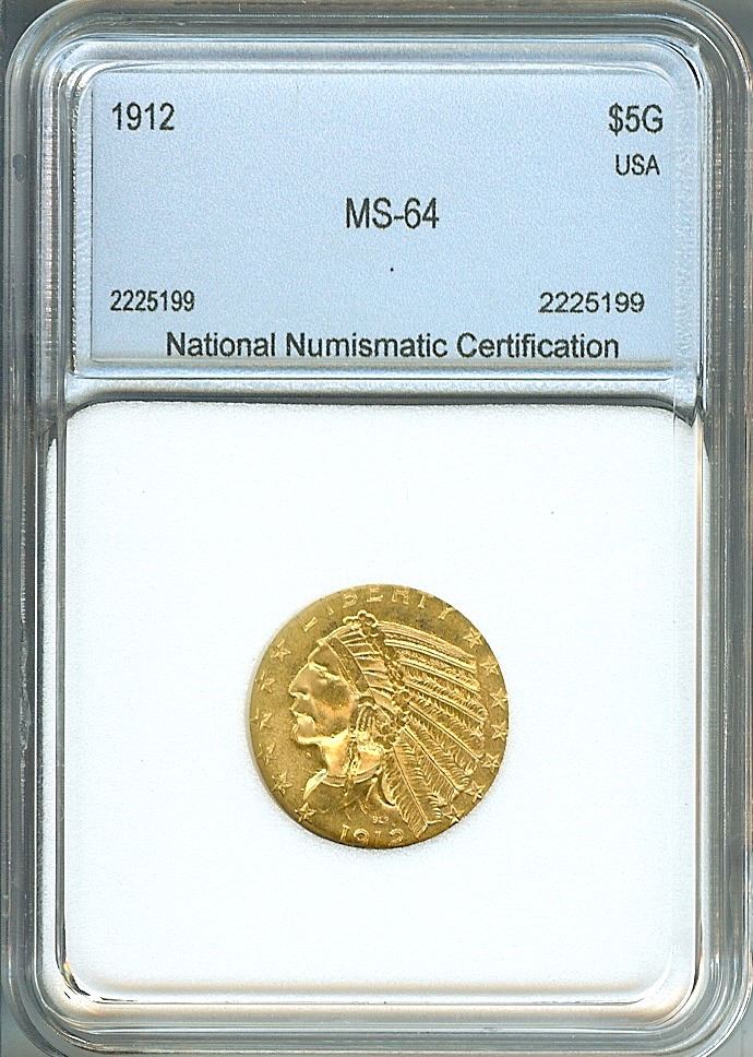 1912 INDIAN HEAD GOLD $5 NNC MS64