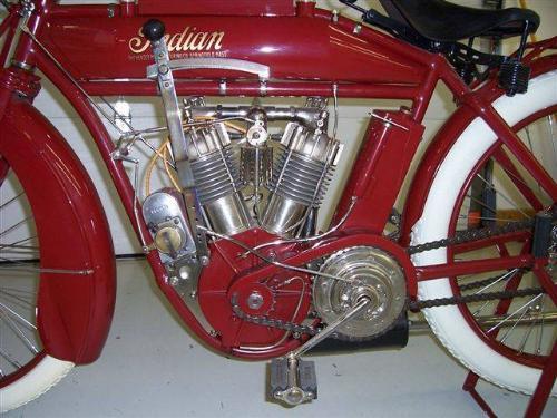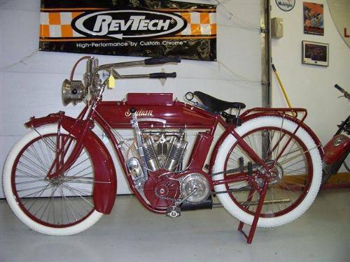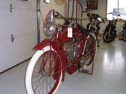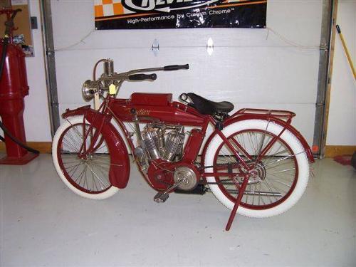 1912 INDIAN MOTORCYCLE- THIS IS A 1912 INDIAN MOTORCYCLE THAT IS SELLING AT AUCTION IN OSLO,K MN 10-15-05 TO THE HIGHEST BIDDER AT NO RESERVE. THE SERIAL NUMBER IS 70D767. THIS IS AN OLDER RESTORATION THAT IS VERY NICE. IT IS A CONDITION 3 BIKE. IT RAN 6 YEARS AGO AND HAS HAD THE FLUIDS DRAINED AND MAINTAINED BY THE OSLO HARLEY SHOP SINCE THEN. IT WILL RUN AND DRIVE WITH SOME WORK. FOR DETAILS ON THIS- PLEASE CALL TIM IN OSLO FOR COMPLETE RESTORE DETAILS- 1-218-695-2082. IT IS A V-TWIN 2 CYLINDER MOTOR THAT HAS BEEN APART AND NICKEL PLATED. IT IS ALL ORGINAIL AND PUT BACK TOGETHER. IT IS NICELY DETAILED AND NICE NICKEL WORK ON BIKE. IT HAS MECHANICAL BRAKES, NEW GRIPS, PEDALS, AND HAS PEGS ON BACK. IT IS CHAIN DRIVE AND PEDAL START. IT HAS A GAS HEADLIGHT AND CARBON GENERATOR. THE BACK TIRE IS ONE SIZE TOO BIG, THE FRONT FENDER IS NOT OPEN OR CORRECT FOR THAT YEAR. THE HANDLE BARS ARE ALSO NOT CORRECT FOR THAT YEAR. IT IS MAROON/RED IN COLOR AND PRETTY. IT HAS NICE DECALS AND SHINY METAL –NICKEL WORKS. IT IS LOOSE AND WILL RUN- BUT FLUIDS ARE DRAINED AND HAS BEEN PREPAIRED FOR SHIPPING AND SHOWED SINCE 6 YEARS AGO. THE SHOP HAS BABYSAT IT SINCE THEN AND TAKEN CARE OF THE BIKE. CALL THEM FOR DETAILS OR THE AUCTIONEER. SELING AS IS- TO THE HIGHEST BIDDER-NO RESERVE.