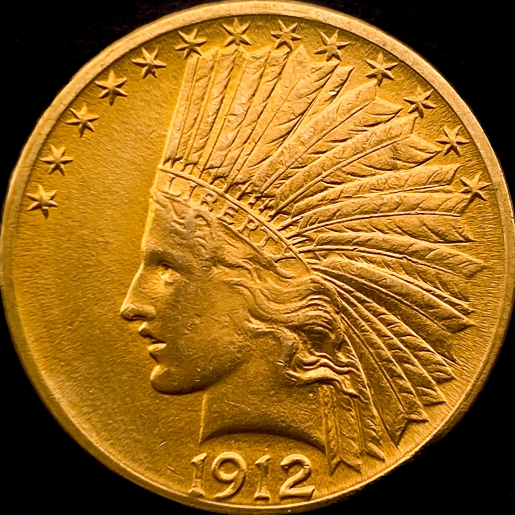 1912 Indian Head Eagle $10 Gold Coin NEARLY UNCIRCULATED