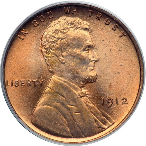 1912 Lincoln Cent. PCGS graded MS-66 Red. A fiery mint red gem! Despite the moderate population in this grade, it might take years if one were inclined to to "hoard" 5 pieces similar to this one, let alone 10 out of a total census: Pop 84; 10 finer with 3 in 66+, 1 in 67 (PCGS # 2452) .