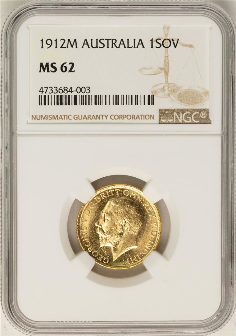 One 1912-M Australia Sovereign Gold Coin NGC MS62. NGC Certified.