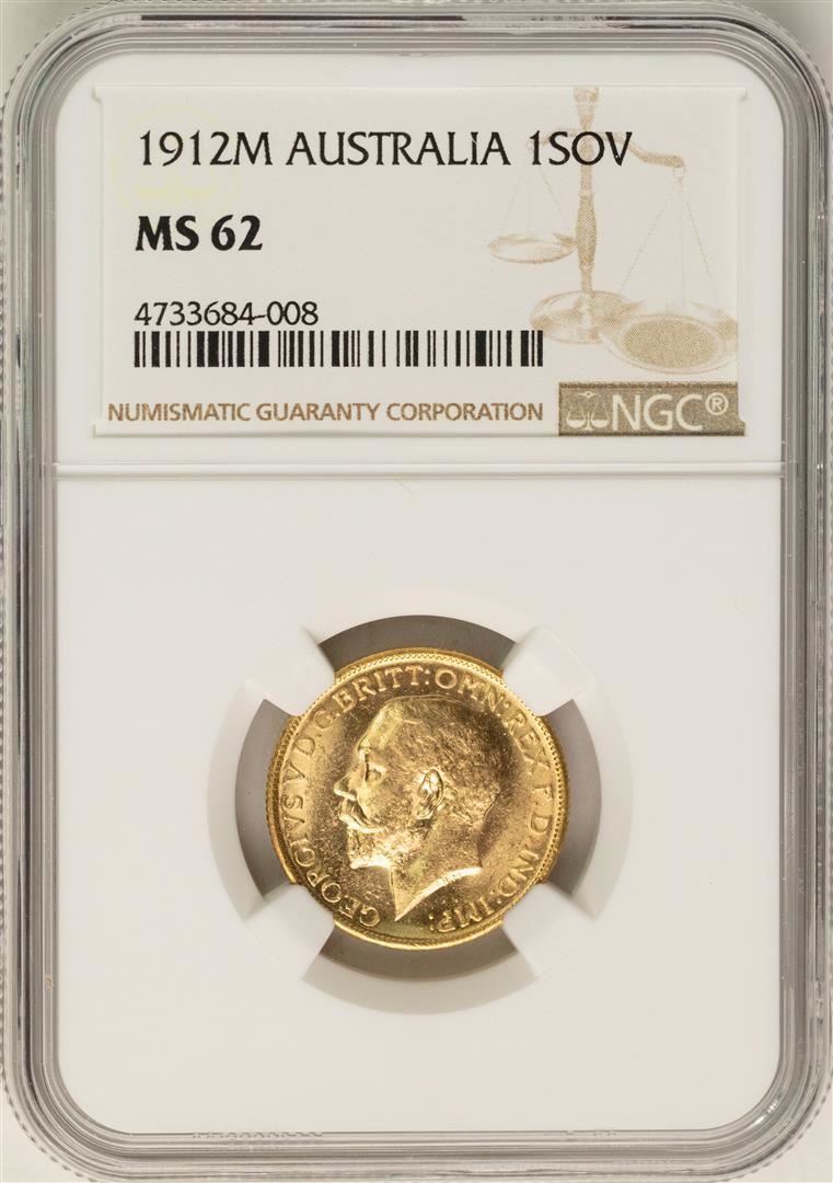 One 1912-M Australia Sovereign Gold Coin NGC MS62. NGC Certified.