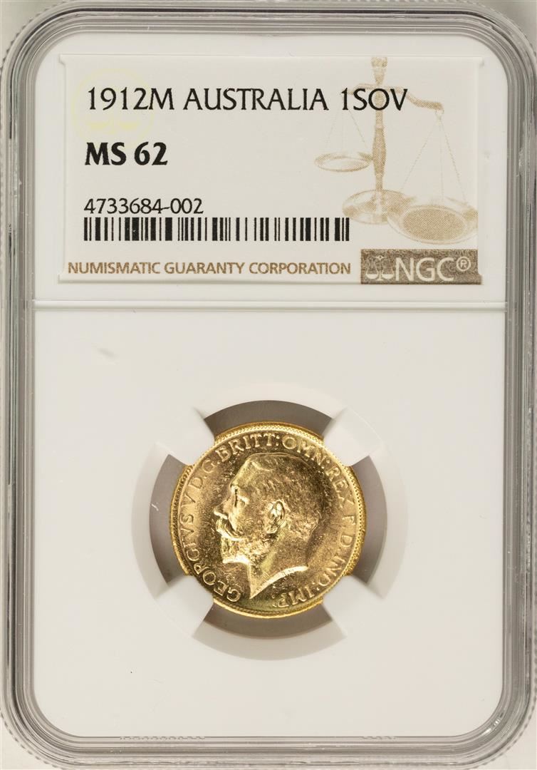 One 1912-M Australia Sovereign Gold Coin NGC MS62. NGC Certified.