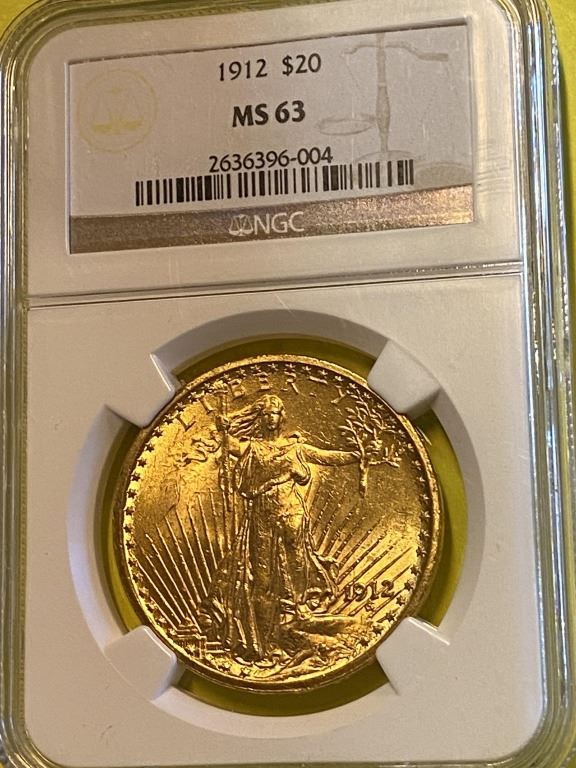 A better date 1912 Mint State 63 $20 Gold Saint Gaudens