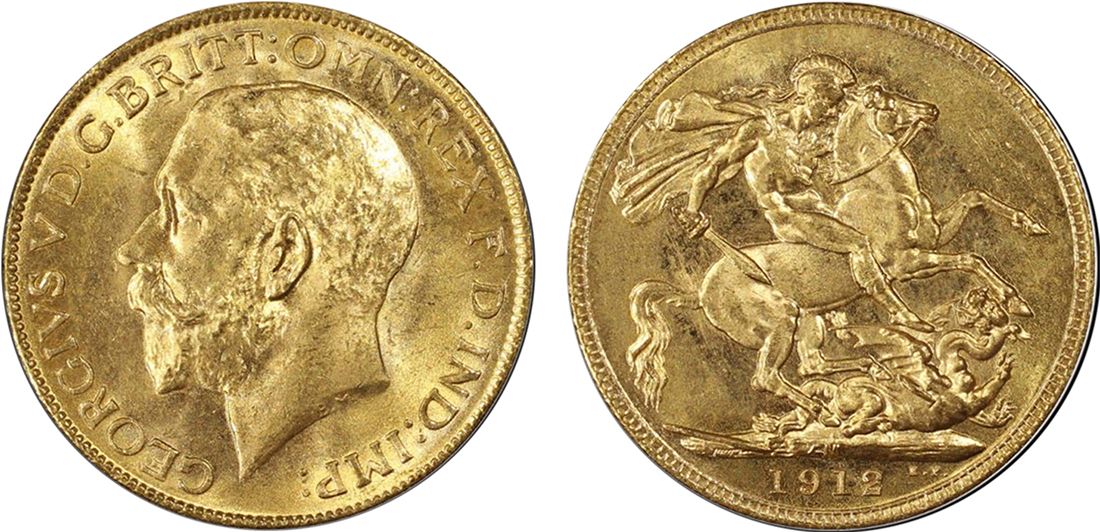 1912 Melbourne Mint KGV Sovereign - PCGS 64