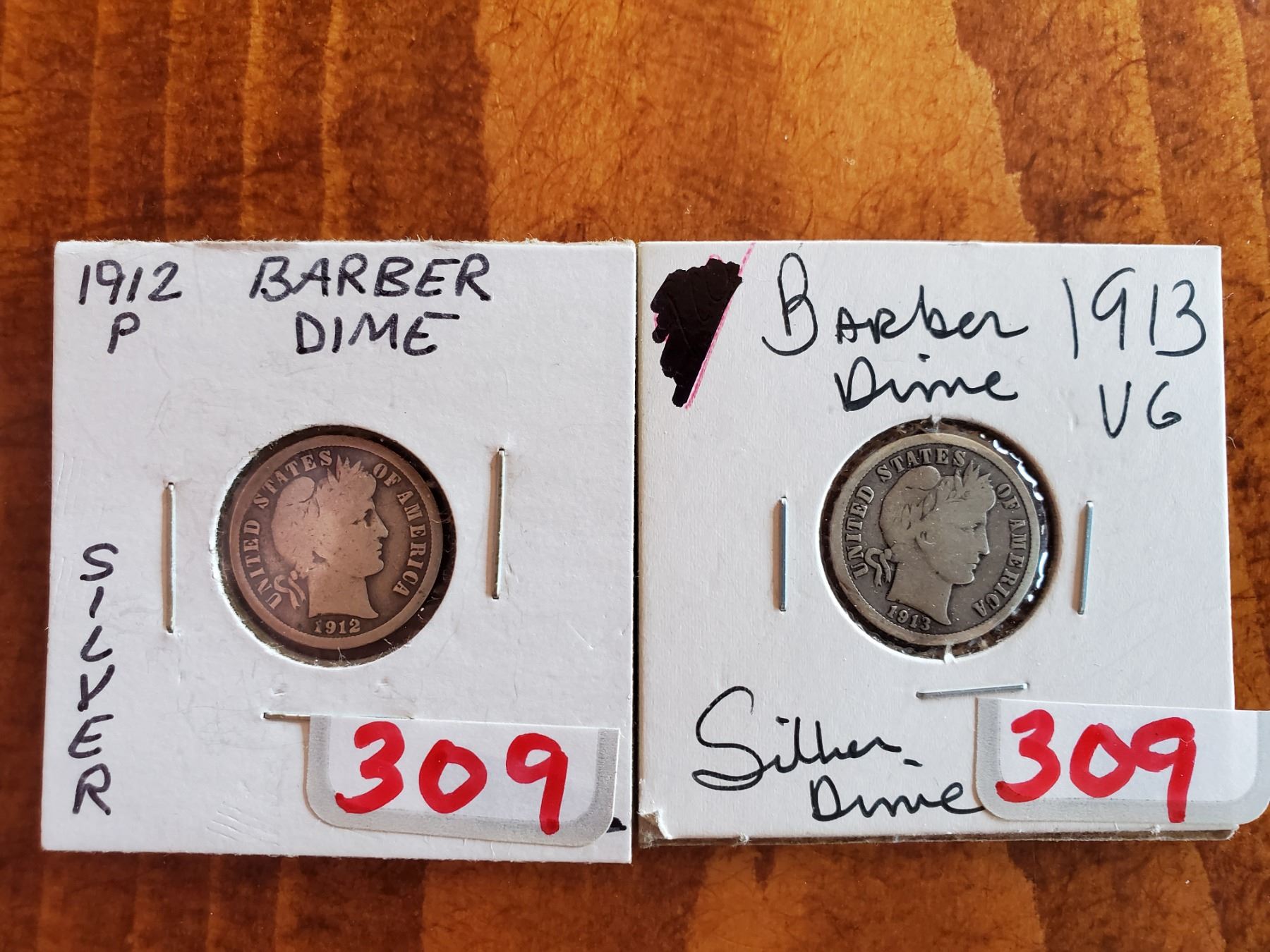 1912 P BARBER DIME & 1913 VG BARBER DIME- SILVER