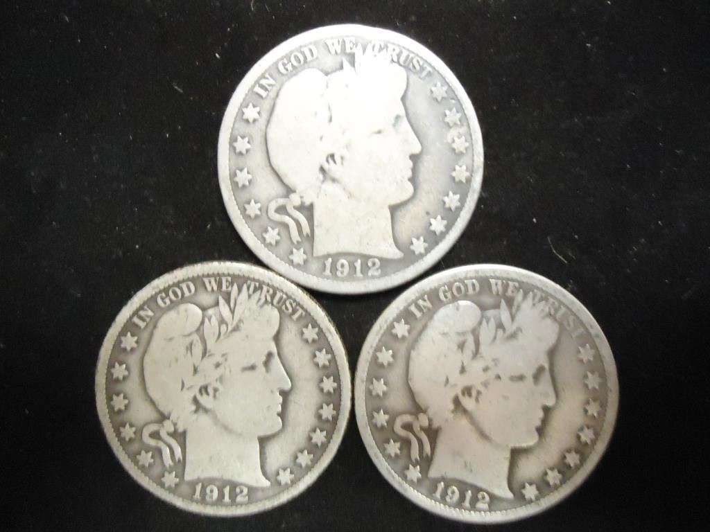 1912 P/D/S BARBER HALF DOLLARS