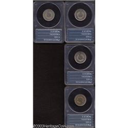 <table><tr><td><TABLE cellSpacing=0 cellPadding=0 width="100%" bgColor=#000000 border=0><TBODY> <TR><TD width="100%"><TABLE cellSpacing=1 cellPadding=3 width="100%" border=0><TBODY><TR><TD width="100%" bgColor=#79735c><FONT face=arial color=#ffffff size=3><B>Description</B> </FONT></TD></TR><TR><TD width="100%" bgColor=#ffffff><FONT face=arial size=2><B>1909 5C PR63 PCGS,</B></I> brilliant save for a few scattered freckles of carbon; <B>1910 PR63 PCGS,</B></I> subtle flashes of pink and green iridescence over both sides; <B>1911 PR63 PCGS,</B></I> rich apricot and steel-blue toning; and a <B>1912 PR63 PCGS,</B></I> draped in milky gray patina. All four reside in first generation holders. (4 coins) </FONT></TD></TR></TBODY></TABLE></TD></TR></TBODY></TABLE><BR><A name=PricesRealized></A><TABLE cellSpacing=0 cellPadding=0 width="100%" bgColor=#000000 border=0><TBODY><TR><TD width="100%"><TABLE cellSpacing=1 cellPadding=3 width="100%" border=0><TBODY><TR><TD width="100%" bgColor=#79735c><A name=PR><FONT face=arial color=#ffffff size=3><B>Previous Prices from Heritage Auctions</B> </FONT></A></TD></TR><TR><TD bgColor=#f6f6ed><TABLE cellSpacing=0 cellPadding=0 width="100%" border=1><TBODY><TR><TD align=middle width="33%"><B>Date</B></TD><TD align=middle width="33%"><B>Service</B></TD><TD align=middle width="33%"><B>Price</B></TD></TR><TR bgColor=whitesmoke><TD width="33%"><B>05/29/2001</B></TD><TD width="33%">PCGS</TD><TD width="33%">$150.00</TD></TR><TR bgColor=whitesmoke><TD width="33%"><B>03/14/1999</B></TD><TD width="33%">PCGS</TD><TD width="33%">$137.50</TD></TR><TR bgColor=whitesmoke><TD width="33%"><B>11/17/1995</B></TD><TD width="33%">PCGS</TD><TD width="33%">$187.00</TD></TR><TR bgColor=whitesmoke><TD width="33%"><B>02/03/1993</B></TD><TD width="33%">PCGS</TD><TD width="33%">$132.00</TD></TR></TBODY></TABLE></TD></TR><TR><TD bgColor=#ffffff><FONT face=arial size=1 ?>PLEASE NOTE: All prices realized reflect the final hammer price PLUS the buyer's premium in auctions that charge a buyer's premium. Each item has a notation at the top of the listing indicating whether that lot included a buyer's premium. Example: A item that sells with a final hammer price of $100 and a 20% buyer's premium will display with a price realized of $120. All information listed is intended to be as accurate as possible, but errors are possible. Please use this guide carefully and inform us of any inaccuracies. </FONT></TD></TR></TBODY></TABLE></TD></TR></TBODY></TABLE><BR><TABLE cellSpacing=0 cellPadding=0 width="100%" bgColor=#000000 border=0><TBODY><TR><TD width="100%"><TABLE cellSpacing=1 cellPadding=3 width="100%" border=0><TBODY><TR><TD width="100%" bgColor=#79735c colSpan=6><FONT face=arial color=#ffffff size=3><B>Price Guide*</B> </FONT></TD></TR><TR bgColor=#f6f6ed><TD align=middle><B>Grade</B> </TD><TD align=middle><B>Coin World<BR>(Trends)</B> </TD><TD align=middle><B>Numismedia<BR>Retail</B> </TD><TD align=middle><B>Numismedia<BR>Wholesale</B> </TD><TD align=middle><B>Coin<BR>Universe</B> </TD><TD align=middle><B>Heritage<BR>Value Index</B> </TD></TR><TR><TD colSpan=6>No Pricing Data Available</TD></TR><TR bgColor=#ffffff><TD colSpan=6><FONT size=1>*All information listed is intended to be as accurate as possible, but errors are possible. No item may be returned or refused based on this information which is provided as a service to our customers. You should contact each pricing source directly to determine the accuracy of this information. </FONT></TD></TR></TBODY></TABLE></TD></TR></TBODY></TABLE><BR><TABLE cellSpacing=0 cellPadding=0 width="100%" bgColor=#000000 border=0><TBODY><TR><TD width="100%"><TABLE cellSpacing=1 cellPadding=3 width="100%" border=0><TBODY><TR><TD width="100%" bgColor=#79735c><FONT face=arial color=#ffffff size=3><B>Population Guide</B> </FONT></TD></TR><TR bgColor=#ffffff><TD align=middle><!-- Begin Output of Population Grid--><TABLE cellSpacing=0 cellPadding=0 width="100%" border=0><TBODY><TR><TD vAlign=center><TABLE cellSpacing=0 width="100%" border=1 cellsadding="3"><TBODY><TR><TD vAlign=center><TABLE cellSpacing=0 cellPadding=3 width="100%" border=1><TBODY><TR><TD vAlign=center align=middle bgColor=#f0f1e8 colSpan=2 <CENTER><FONT face=Arial size=2><B>PCGS Pop </B></FONT><CENTER></CENTER></TD><TD vAlign=center align=middle bgColor=#f0f1e8 colSpan=2><CENTER><FONT face=Arial size=2><B>NGC Pop</B></CENTER></FONT></TD></TR><TR><TD vAlign=center><FONT face=Arial size=2>(63)</FONT> </TD><TD vAlign=center align=right><FONT face=Arial size=2>115</FONT> </TD><TD vAlign=center><FONT face=Arial size=2>(63)</FONT> </TD><TD vAlign=center align=right><FONT face=Arial size=2>60</FONT> </TD></TR><TR><TD vAlign=center><FONT face=Arial size=2>(>63)</FONT> </TD><TD vAlign=center align=right><FONT face=Arial size=2>871</FONT> </TD><TD vAlign=center><FONT face=Arial size=2>(>63)</FONT> </TD><TD vAlign=center align=right><FONT face=Arial size=2>853</FONT> </TD></TR></TBODY></TABLE></TD></TR></TBODY></TABLE></TD></TR></TBODY></TABLE><!-- End Output of Population Grid--></TD></TR></TBODY></TABLE></TD></TR></TBODY></TABLE><BR><TABLE cellSpacing=0 cellPadding=0 width="100%" bgColor=#000000 border=0><TBODY><TR> 4 coins Important notice: Heritage usually auctions material at the rate of 200-250 lots per hour. On some occasions eBay Live bid software or the Internet may not be able to keep up with the pace of the auction. We recommend placing a realistic absentee bid now as insurance to avoid disappointment. Occasionally the auctioneer may eliminate or reject an eBay Live bid, and the auctioneer may also reopen a lot after the close of the eBay live bidding (usually because we missed an audience bid), and may reject your bid even if it shows you as the winning bidder. By bidding via eBay Live, you agree that Heritage may award the lot to another bidder at its sole discretion under the circumstances described above or any other reasonable circumstances. Also please note that all Heritage lots purchase