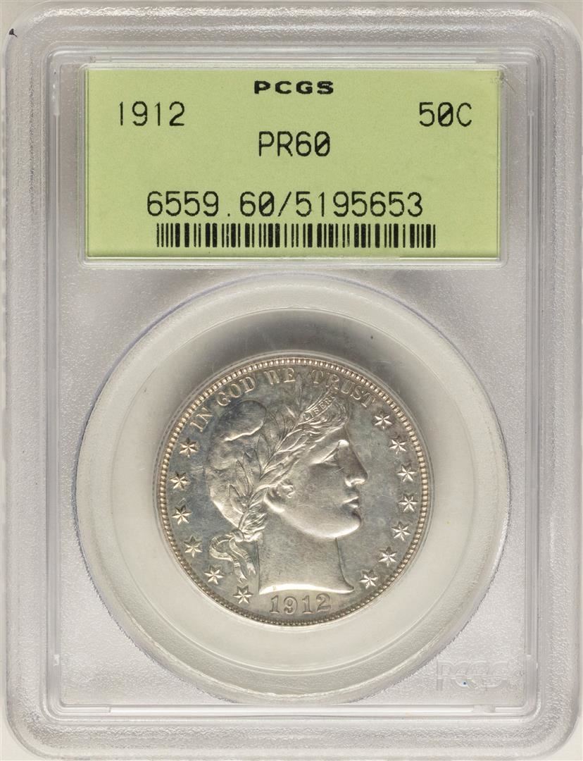 1912 Proof Barber Half Dollar Coin PCGS PR60 Old Green Holder