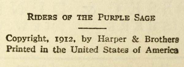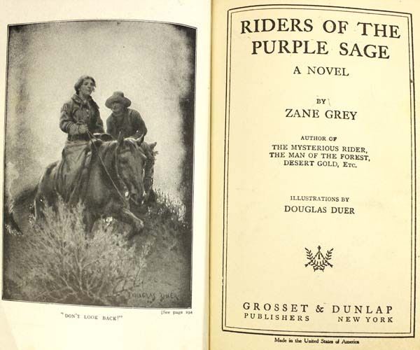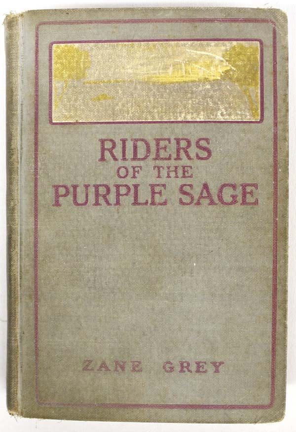 Antique 1912 Riders of the Purple Sage by Zane Grey, hardback book c. 1912 Grosset & Dunlap Publishers New York, loose back cover, is connected with spine netting