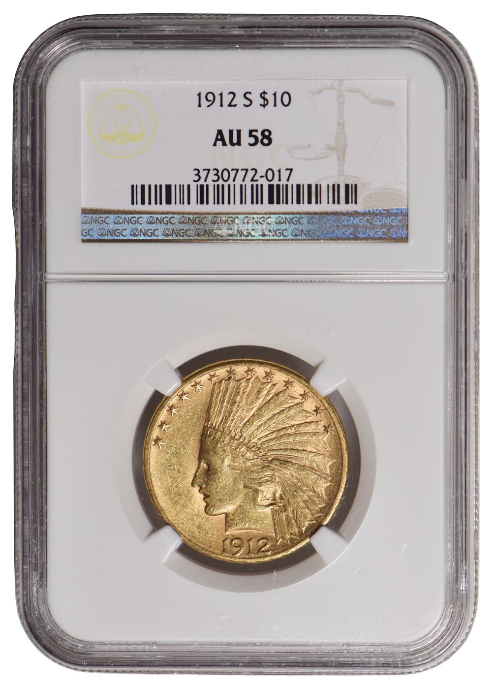 One 1912-S $10 Indian Head Eagle Gold Coin NGC AU58.
