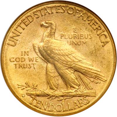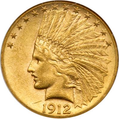 1912-S $10 Indian. NGC graded AU-58. Lightly toned over lustrous surfaces. A small scratch at the point of the bust. Elusive S-mint date (PCGS # 8872) .
