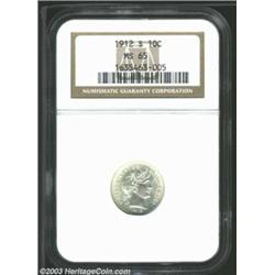 1912-S 10C MS65 NGC. Well-struck with plenty of luster and an absence of marks. A bit of light tonin