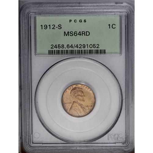 <B>1912-S 1C MS64 Red PCGS.</B></I> Light in color with good definition for this scarcer S-mint. The surfaces are only lightly abraded, and the lower reverse exhibits a hint of carbon. Very scarce any finer. Certified in a green label holder.