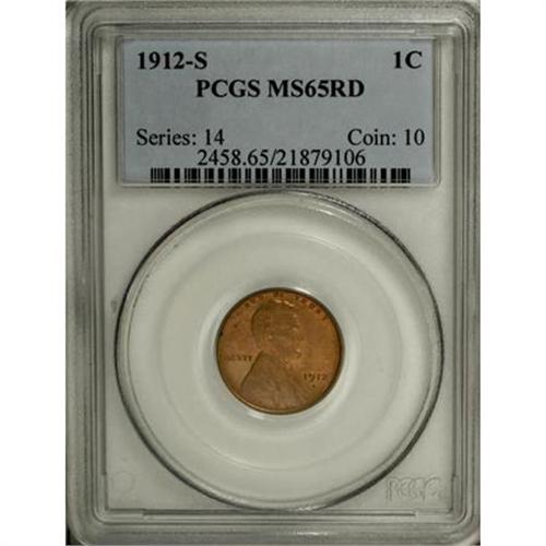 <B>1912-S 1C MS65 Red PCGS.</B></I> Unlike other early Lincoln cents, the 1912-S was not saved in any appreciable numbers. Thus, in spite of a mintage of 4.4 million pieces it is an important semi-key. Original red Gems are especially elusive. This is a lovely coin that shows rich red color. Fully struck. The only mentionable carbon are a few flecks on the upper reverse. Population: 41 in 65, 0 finer (12/07).<BR><BR><B>Coin Engraver:</B> Victor D. Brenner<BR><BR><b>Shipping:</b> Coins & Currency (<a target="_blank" href="http://www.heritageauctions.com/common/shipping.php">view shipping information</a>)