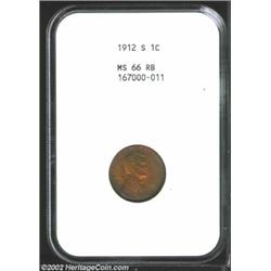 1912-S 1C MS66 Red and Brown NGC. The '12-S is one of the more elusive early Lincoln Cent issues in.