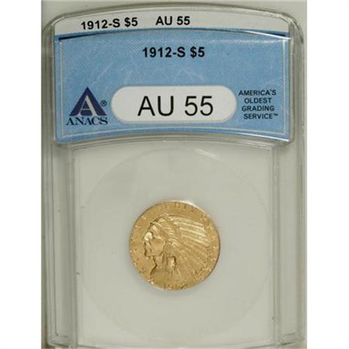 1912-S $5 AU55 ANACS. NGC Census: (200/465). PCGS