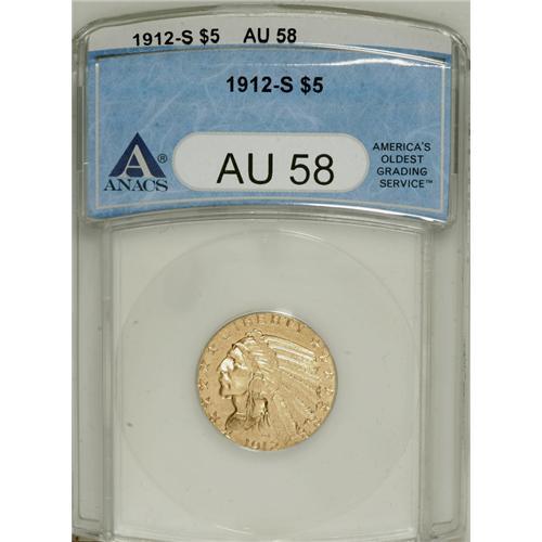1912-S $5 AU58 ANACS. NGC Census: (318/144). PCGS