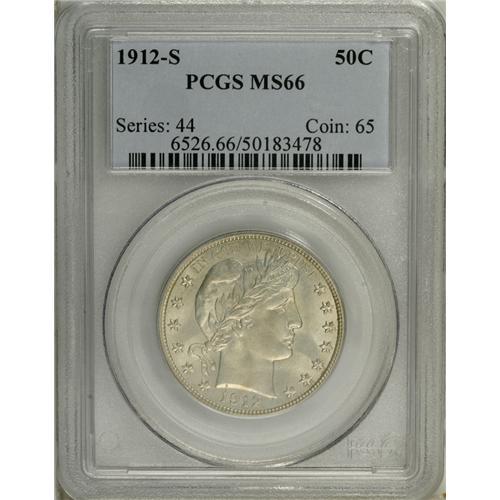<B>1912-S 50C MS66 PCGS.</B></I> Highly lustrous with modest gold and apricot patina over the shining surfaces. Both sides exhibit strong detail, and the devices display few marks. The overall eye appeal is strong for this lower-mintage issue, which proves elusive in Gem and better grades. Population: 7 in 66, 0 finer (12/06).<BR><BR><b>Shipping:</b> Coin/Currency (<a target="_blank" href="http://www.heritageauctions.com/common/shipping.php">view shipping information</a>)