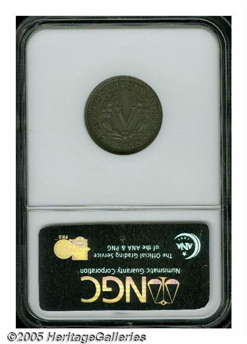 <B>1912-S<5C> AU58 NGC.</B></I> The key date, low mintage 1912-S Liberty nickel is one of the most sought after coins of the 20th century. This specimen shows smoky medium gray patination and nicely defined motifs, except for weakness in the corn ear and leaves to the left of the bow knot. A few flecks are noted on the reverse.<BR><I>From The Empire State Collection.</B></I>
