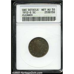 1912-S 5C --Cleaned--ANACS. Unc Details, Net AU50.