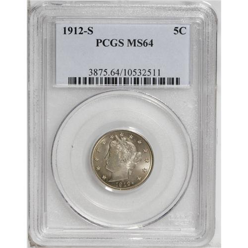 <B>1912-S<5C> MS64 PCGS.</B></I> Light heather and lilac toning graces each side of this stunning and delightful near-Gem coin, a pleasing example of this first nickel coinage from the San Francisco Mint, <I>from the last year of the type.</B></I> Although it seems common in U.S. numismatics that oftentimes a new design is introduced at branch mints that had not previously coined that denomination, what is less common is for new branch mints to coin the <I>last years</B></I> of a series. An interesting challenge might be to collect such pieces in high grade, for example the 1912-D and -S Liberty nickels, the 1908-S and 1909-S Indian cents, the 1891 O-mint dime and quarter issues, the 1921-D Morgan dollar, and the D-mint 1906 and 1907 eagles and double eagles. Are there others?