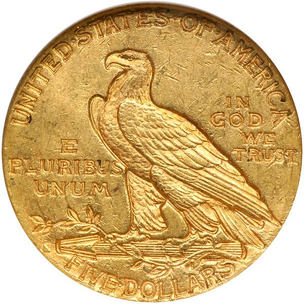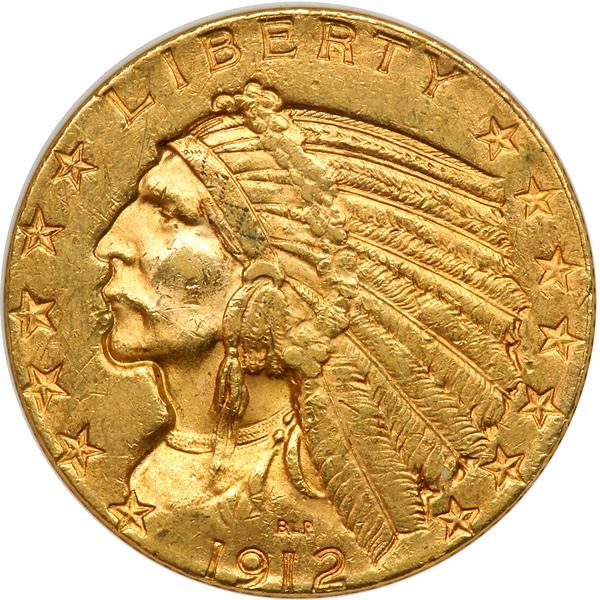 1912-S. ANACS graded MS-62. Frosty and lightly toned. Some of the branch mint Indian $5 gold pieces are sleepers in Mint condition, and 1912-S is definotely one of those. We see no way that this is going to escape the notice of knowledgable collectors of this desirable gold series. It rises above most others in its grade.