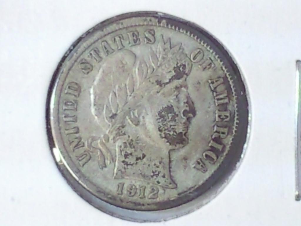 1912-S BARBER DIME (EXTRA FINE) (TONED)