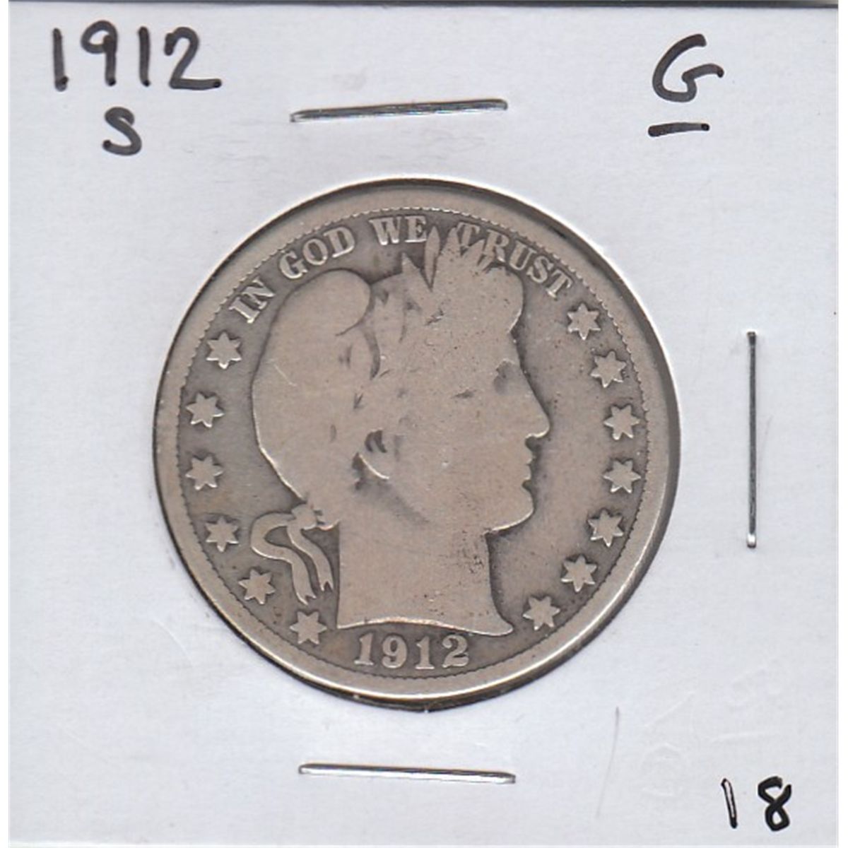 1912-S SILVER BARBER HALF DOLLAR 50c