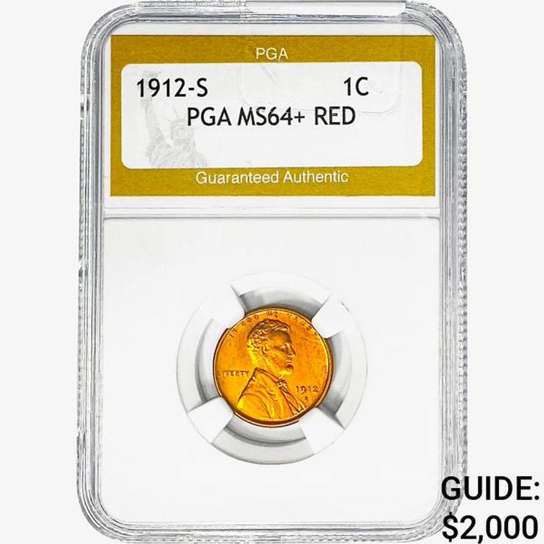 1912-S Wheat Cent PGA MS64+ RED