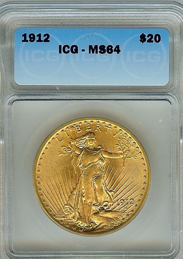 1912 SAINT GAUDENS GOLD $20 ICG MS64