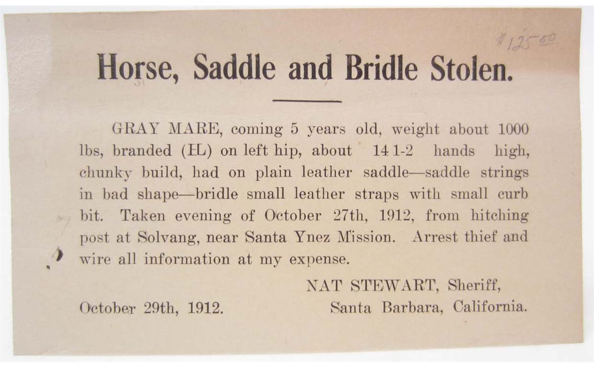 stolen horse, saddle and bridle. from San Bernardino, Ca