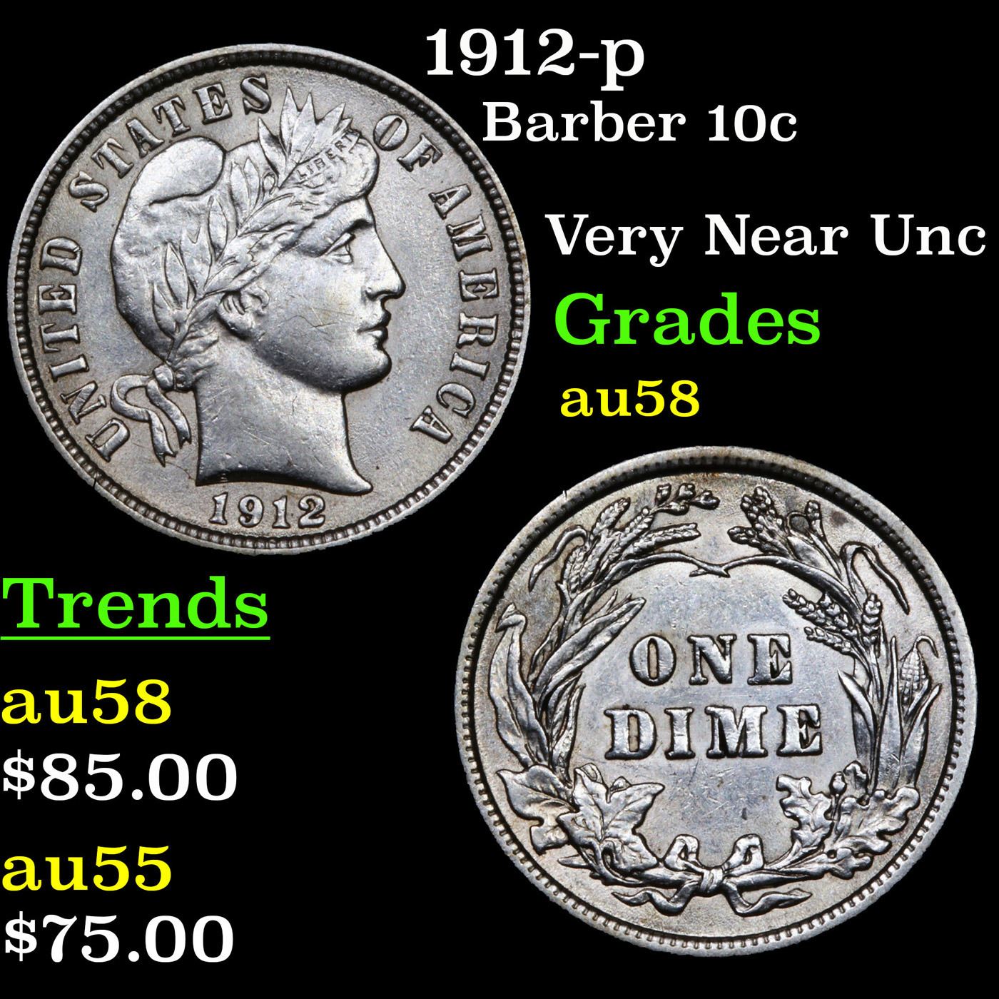 1912-p Barber Dime 10c Grades Choice AU/BU Slider.