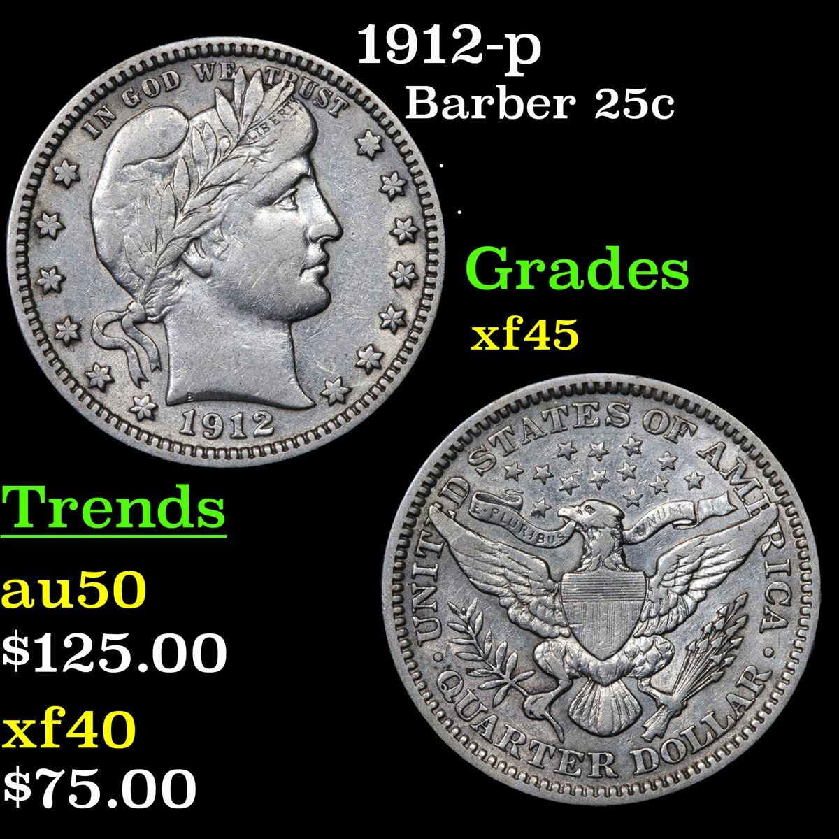 1912-p . . Barber Quarter 25c Grades xf+.