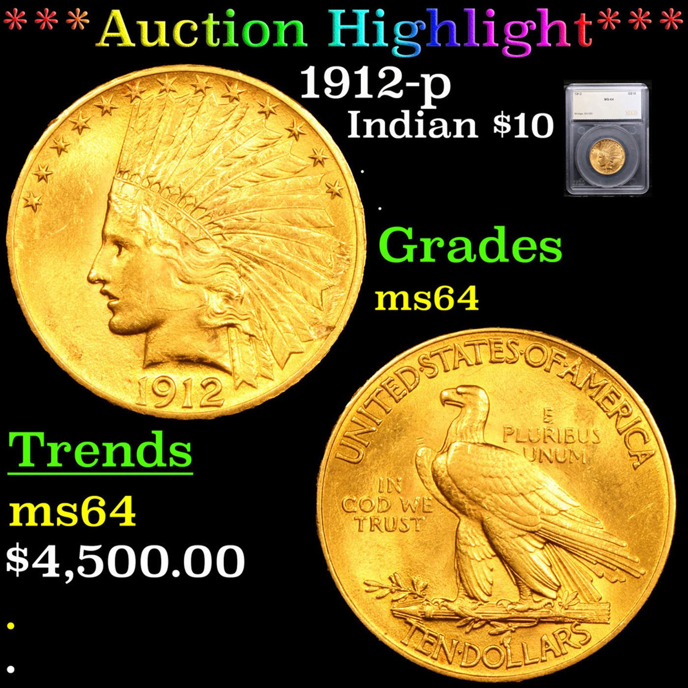 1912-p Gold Indian Eagle $10 Graded ms64 By SEGS.