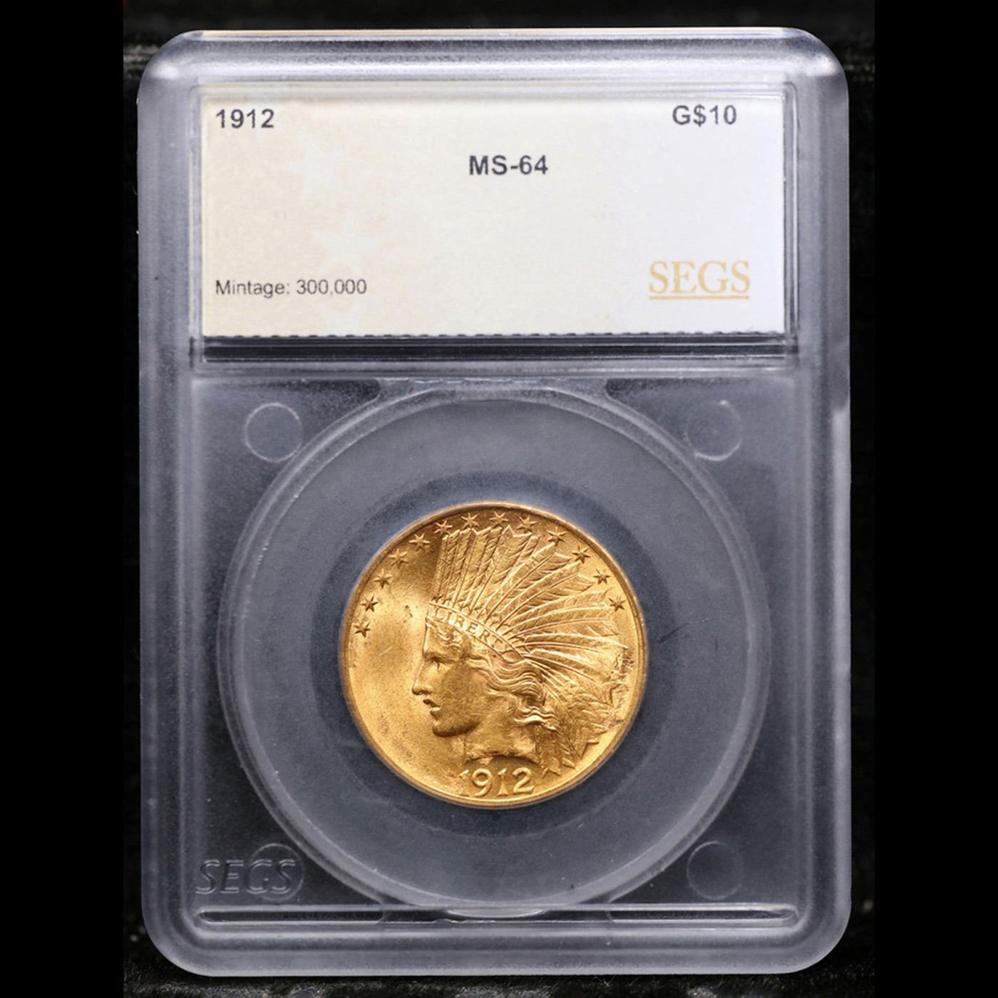 1912-p Gold Indian Eagle $10 Graded ms64 By SEGS.