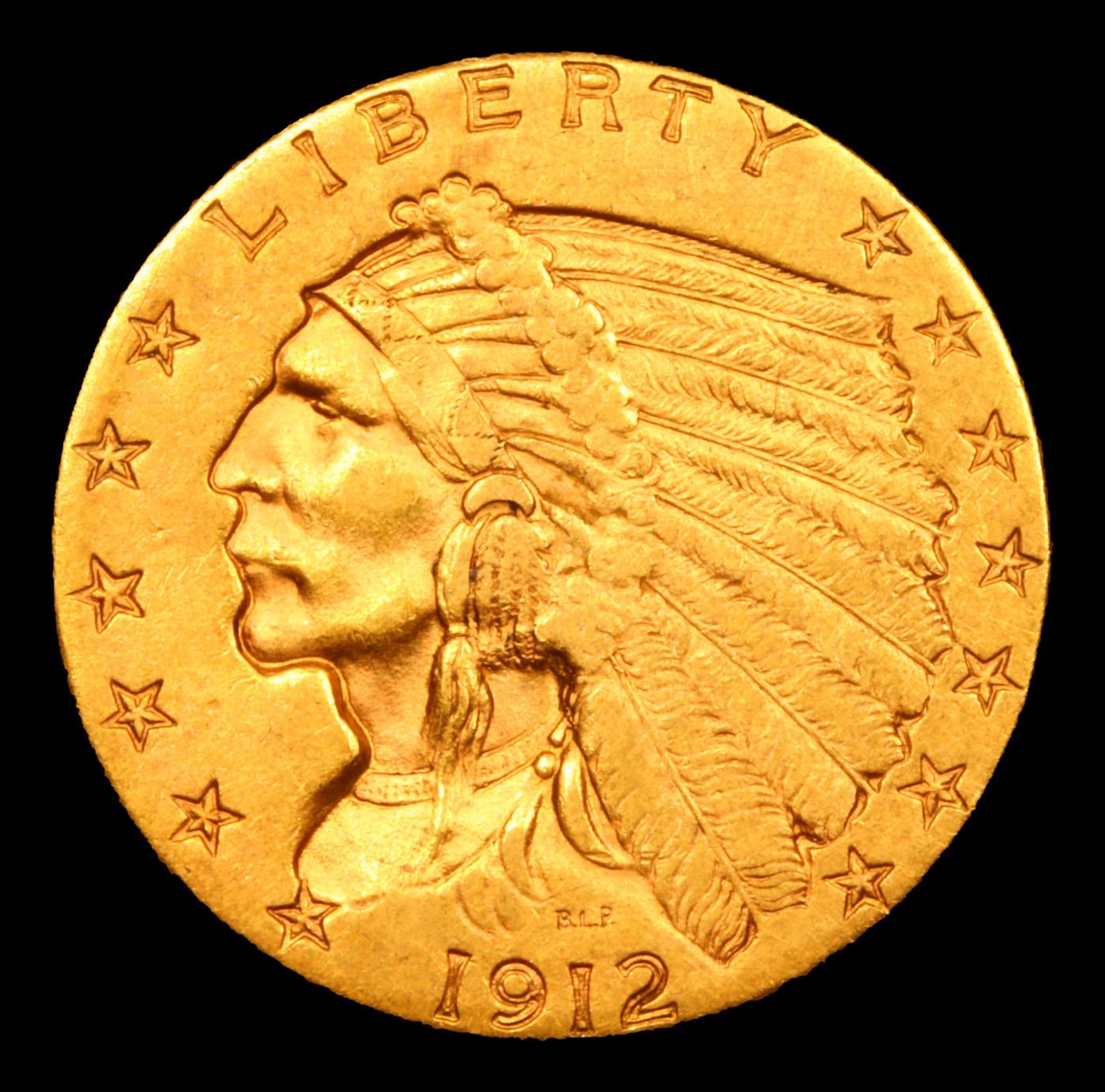 1912-p Gold Indian Quarter Eagle $2 1/2 Grades Unc Details.