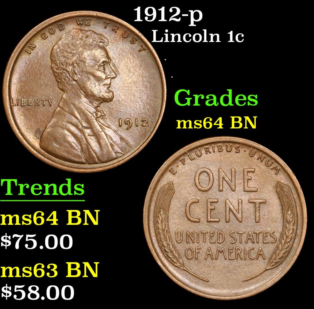1912-p . . Lincoln Cent 1c Grades Choice Unc BN.