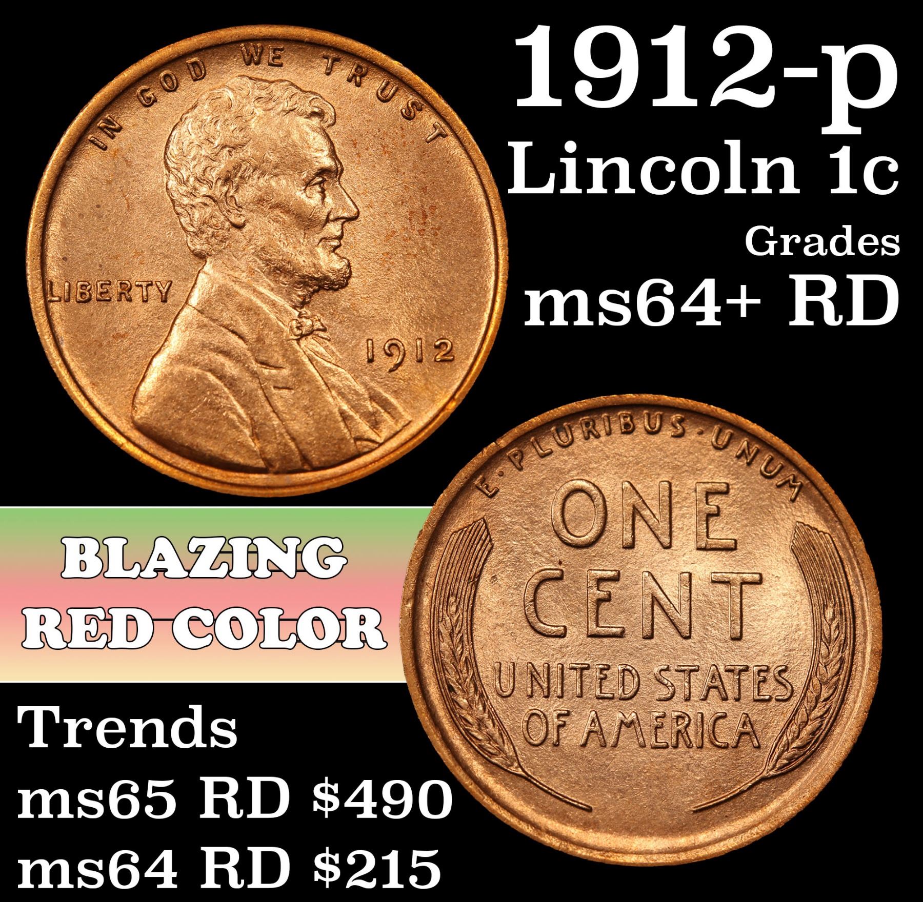 1912-p Lincoln Cent 1c Grades Choice+ Unc RD.