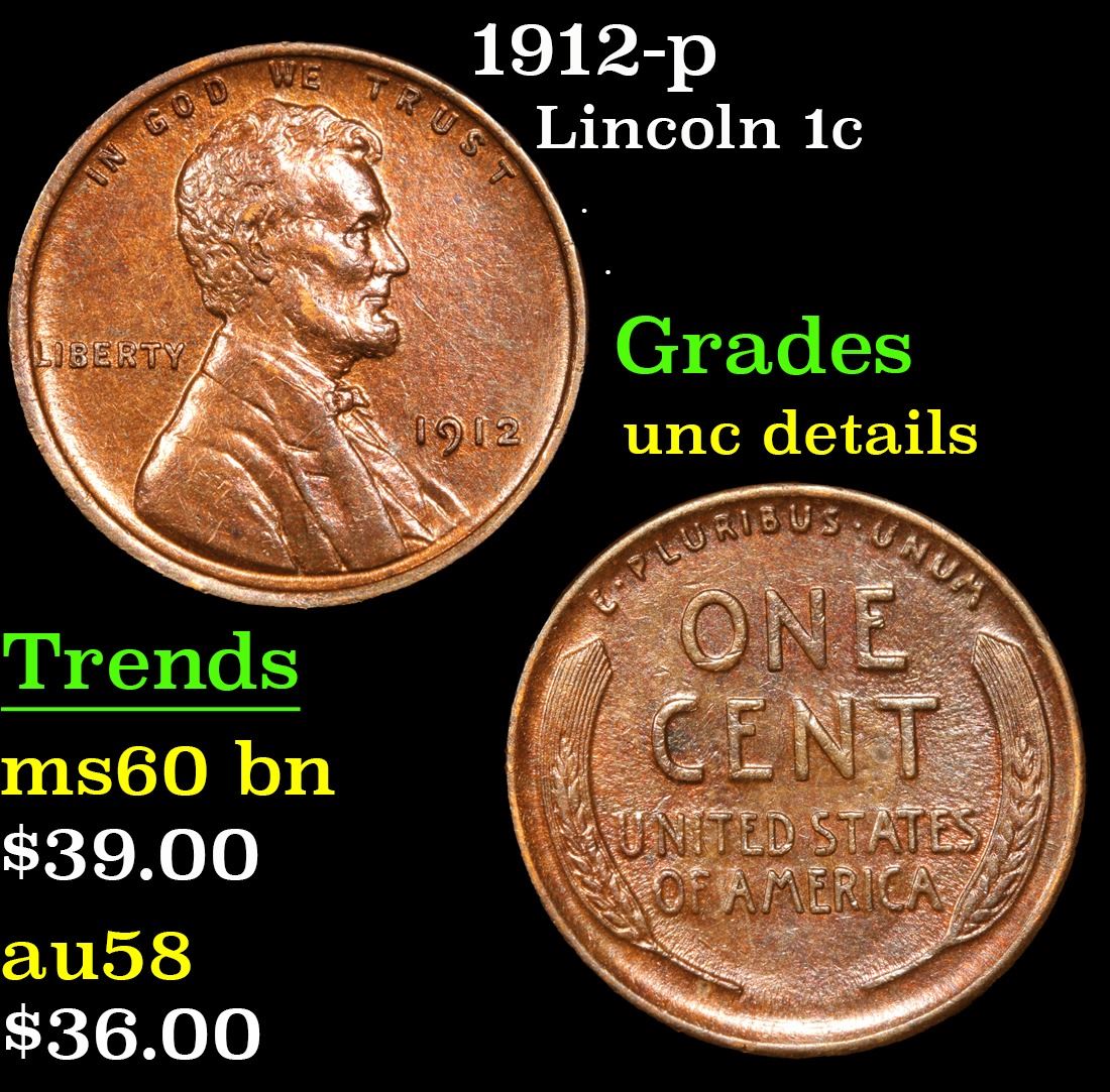 1912-p Lincoln Cent 1c Grades Unc Details.