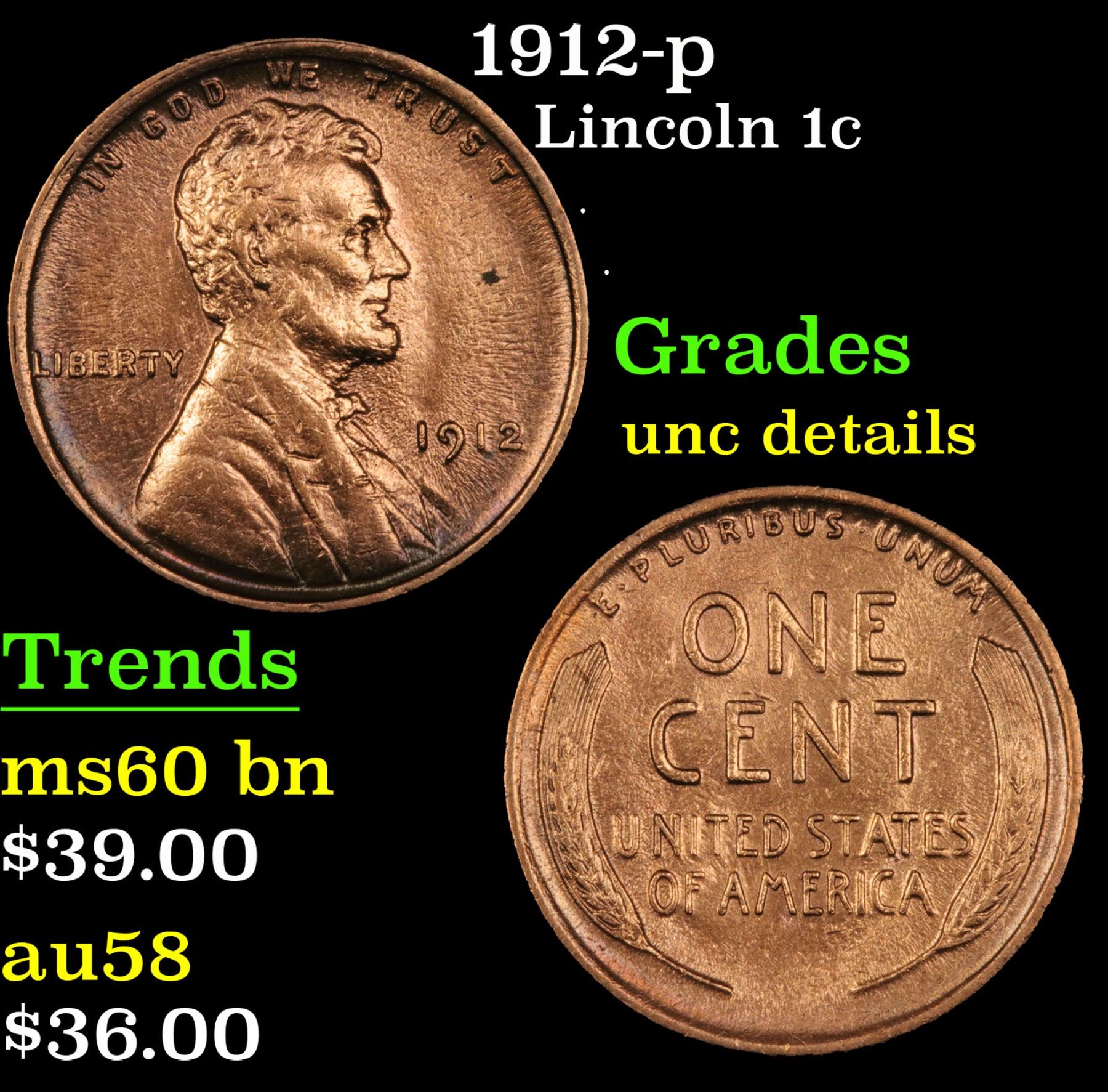 1912-p . . Lincoln Cent 1c Grades Unc Details.