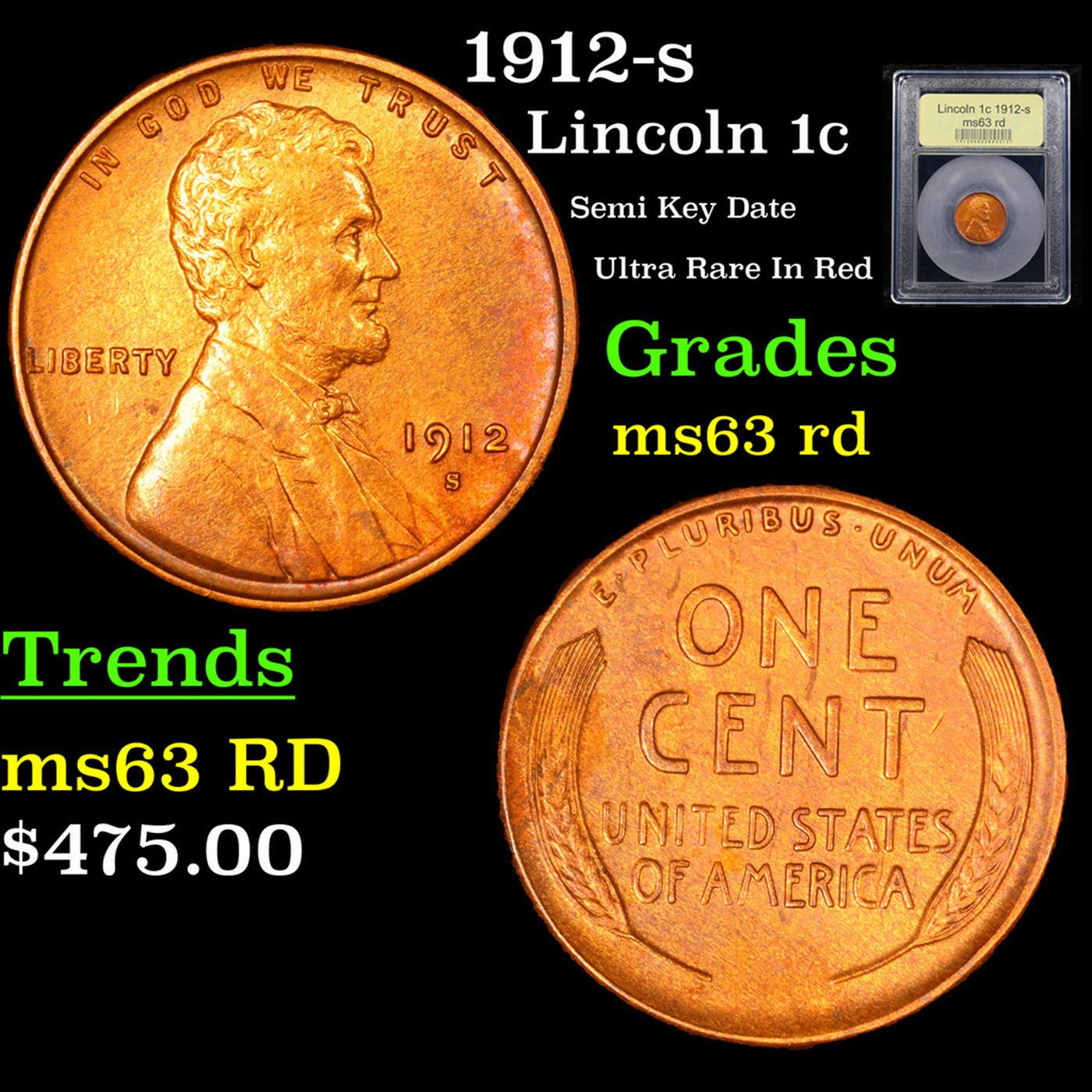 1912-s Lincoln Cent 1c Graded Select Unc RD By USCG. According to David Hall from PCGS, 'The 1912-s, like all early s-mint Lincolns, is a scarce semi-key date in all grades.