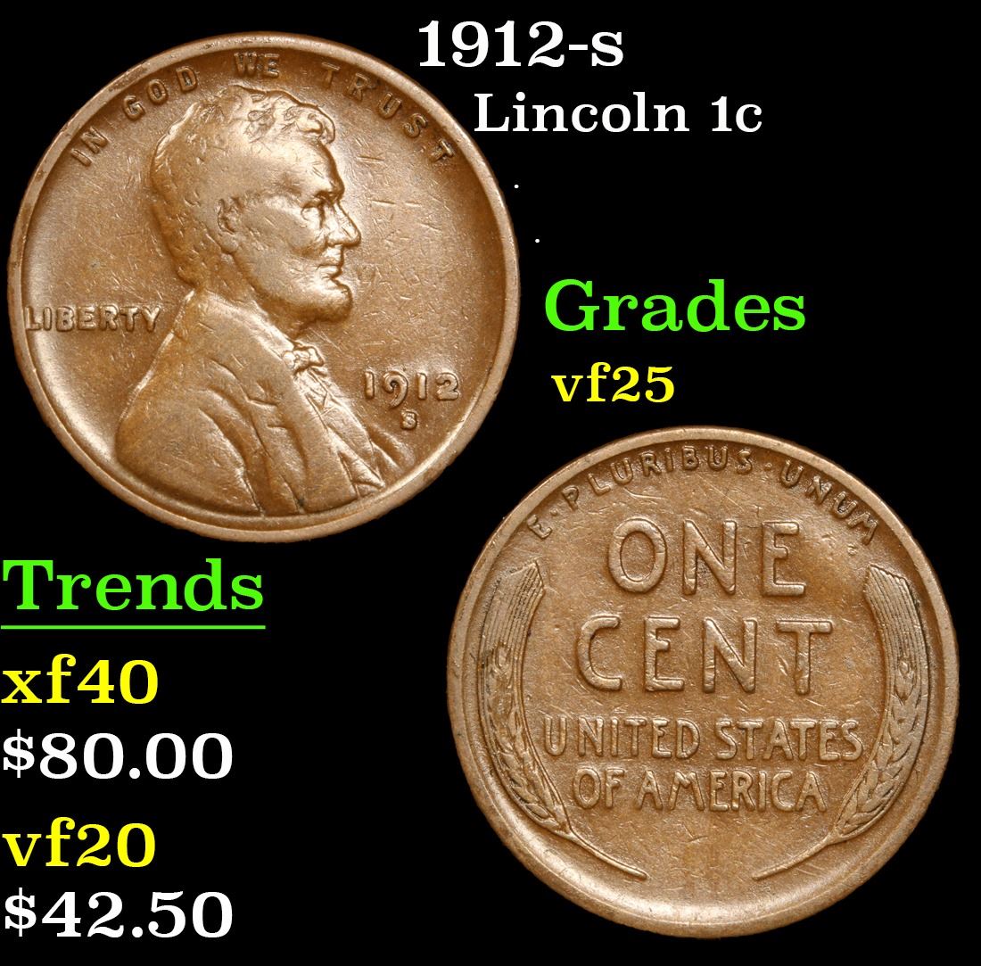 1912-s Lincoln Cent 1c Grades vf+. According to David Hall from PCGS, 'The 1912-s, like all early s-mint Lincolns, is a scarce semi-key date in all grades.