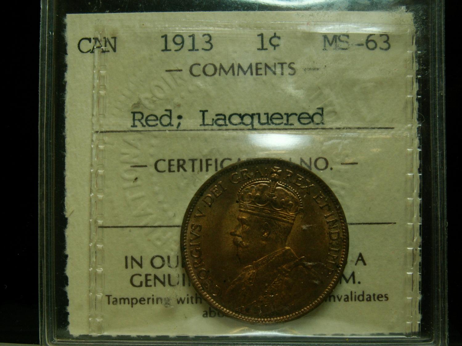 1913 1¢ ICCS MS63 Red Lacquered