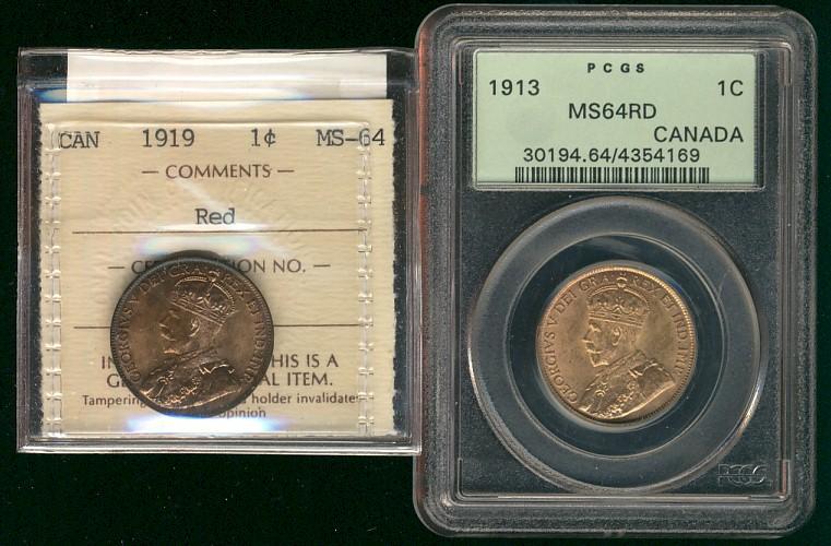 1913 1¢ PCGS & 1919 ICCS. Lot of 2 coins both MS64RD.