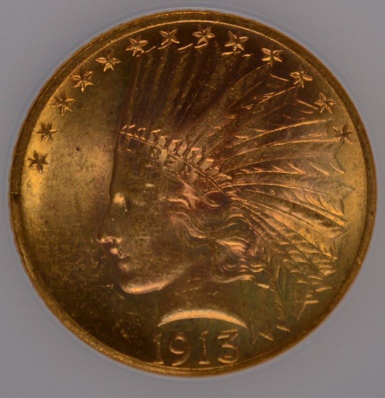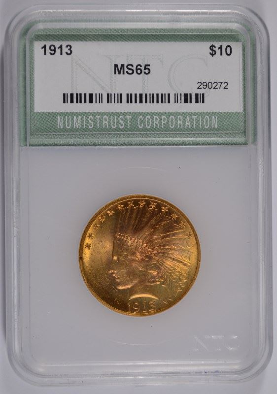 1913 $10.00 GOLD INDIAN, NTC MS-65 GEM LISTS FOR $8500.00, SUPER LUSTRE!!