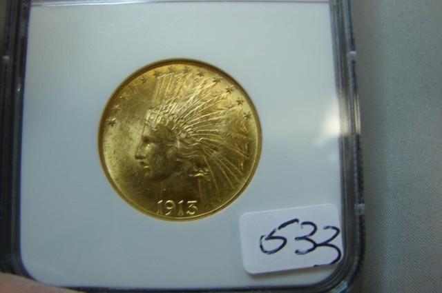 1913 $10.00 Indian Head Gold Coin NGC MS62